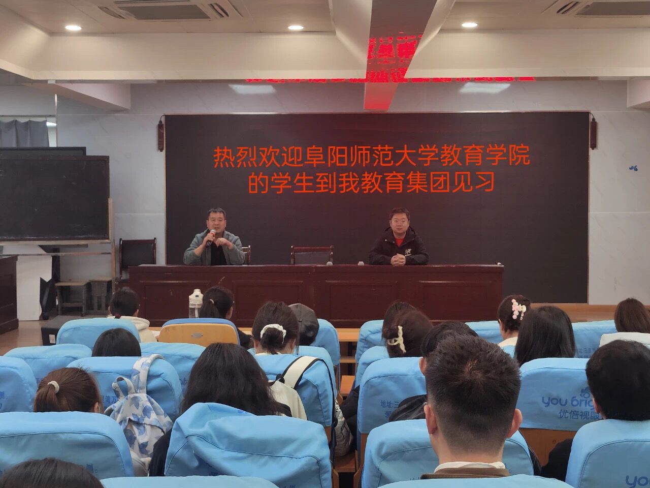 阜阳市实验小学教育集团党总支书记、校长李雷、办公室主任申克才等领导接接待了参加见习的师生,并在会议室举行了欢迎仪式。李雷对我校往届实习、见习学生给予了充分肯定。他语重心长地勉励大家,要做有时代担当的热血青年,趁年轻多读书、读好书,努力奋斗,书写绚烂人生。