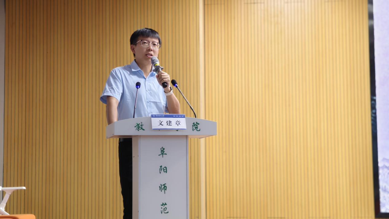 文建章以“数智时代教育的审美存在:作为一种超越的力量”为题进行汇报。他深入剖析数智时代教育的现状与挑战,指出当下对技术过度推崇易引发技术依赖与人性压抑,强调教育审美存在是应对技术异化的关键。文建章对数智时代教育审美的意涵进行再认,阐述其在释放生命潜能、塑造技术向美文化理念等方面的作用,最后提出精心设计审美目标的实现关键。