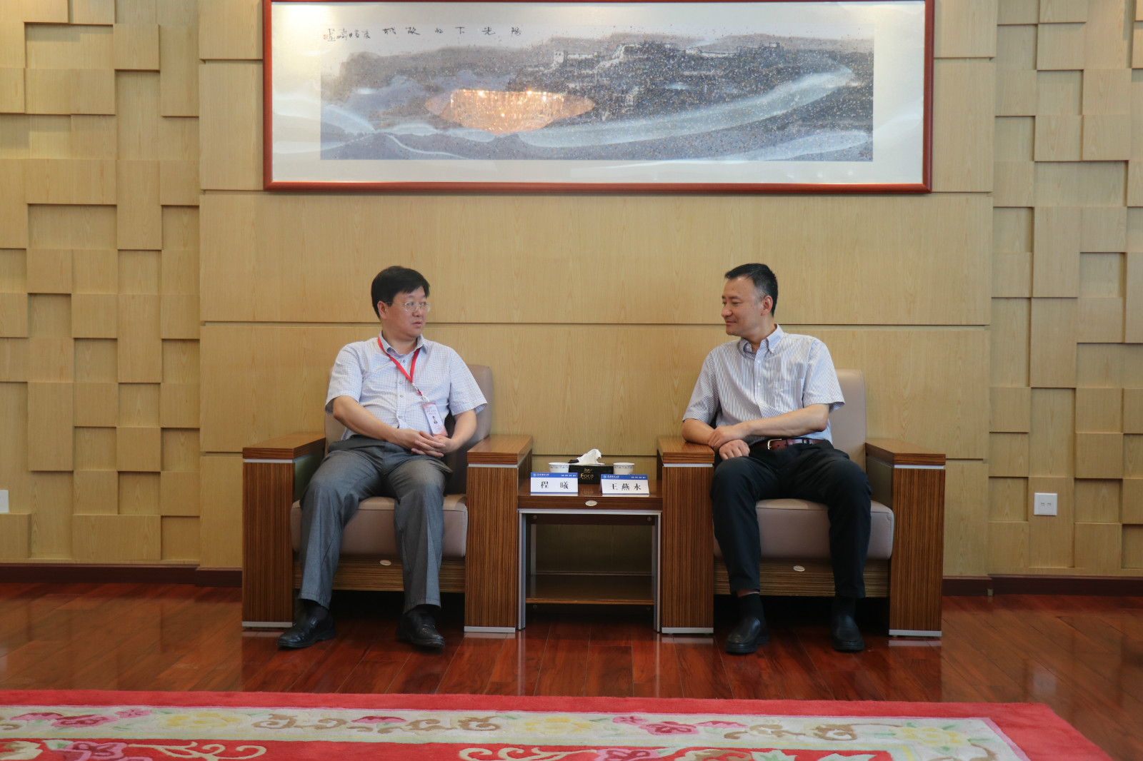 在正行楼贵宾接待室,程曦对王燕永一行的到访表示欢迎。程曦向客人简要介绍了我校近年来在师资队伍建设、科学研究、校地合作等方面取得的成就,并指出,在大学更名前后,学校在阜阳市委市政府的大力支持下,不断凝练办学特色,逐步提高办学水平,主动融入阜阳经济社会的高速发展,服务区域经济社会发展能力和水平不断提升。