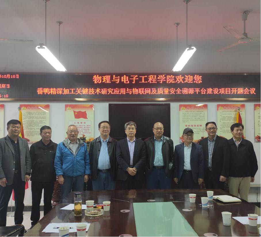 2020年10月18日下午,“番鸭精深加工关键技术研究应用与物联网及质量溯源平台建设”项目开题会议在阜阳师范大学躬行楼C栋306室召开。