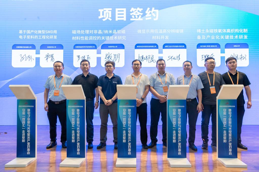 对接会上,华中科技大学博士生导师、华引芯(武汉)科技有限公司总经理孙雷蒙、清华大学电子信息研究院副院长王瀚晟教授分别做了“新型显示光源应用与产业分析”“创新、教育、科技、人才深度融合助推电子信息产业化”的主旨演讲。安徽翔胜科技公司董事长孙标、安徽智磁新材料公司副总经理罗顶飞等嘉宾围绕创新创业、科技成果如何与资本对接并转化为生产力并最终实现产业化发展,进行了故事分享。