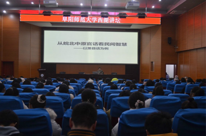 12月17日下午,由阜阳师范大学科研处举办,党委宣传部、团委协办,文学院承办的第9期西湖讲坛在西湖校区躬行F楼报告厅举行,本次讲座主题为“从皖北中原官话看民间智慧”,文学院刘杰副教授主讲。