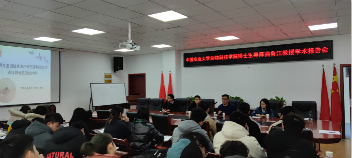 2021年1月6日上午,中国农业大学动物科技学院博士生导师、农业部家禽品质监督检测测试中心副主任、中国畜牧兽医学会家禽学会分会理事曲鲁江教授,应邀来我校作题为《利用全基因组测序研究家鸭驯化的选择信号及驯化时间》的学术报告。抗衰老中草药安徽省工程技术研究中心副主任屈长青教授主持,生物与食品工程学院动物科学专业相关师生参加了此次报告会。