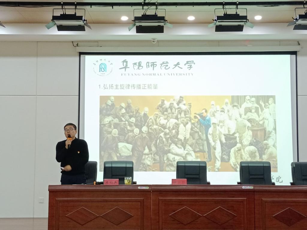李向兵结合习近平总书记的“七一”重要讲话精神和习近平文艺思想对当代美术创作的现实意义做了具体阐述,认真解读了习近平文艺思想的主要内容与特征,结合一幅幅生动鲜活的艺术作品解读绘画作品如何体现习近平文艺思想,如何从艺术作品中弘扬社会主义核心价值观、坚持以人民为中心的创作导向。李向兵还以个人作品《茶馆》系列主题创作为例,对弘扬优秀传统文化方面做了详细分析,引领学生思考习近平文艺思想对当代美术创作的现实意义,以及如何通过美术作品讲中国故事、展大国风范、扬核心价值、强文化自信。