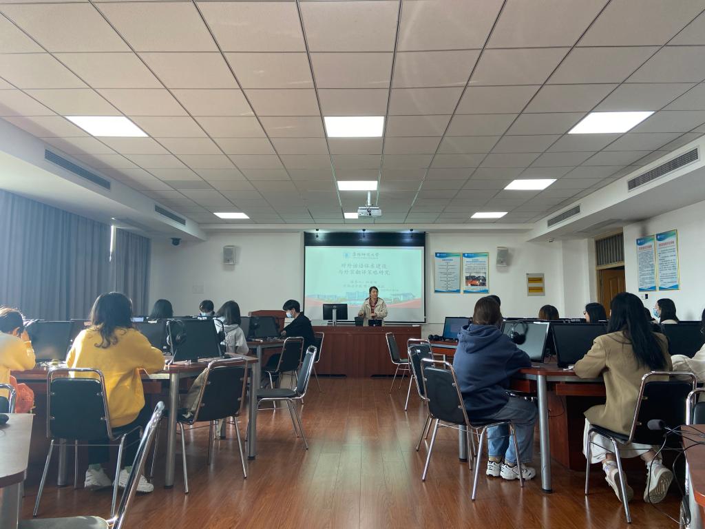 11月5日下午,由科研处主办,外国语学院承办的2022年度“西湖讲坛”以线上线下相结合的方式举办。本期讲坛由外国语学院杜丽娟博士主讲,报告主题为“对外话语体系建设与外宣翻译策略研究”。外国语学院各专业学生通过腾讯会议聆听了本次讲座,并参加了线上交流与讨论。