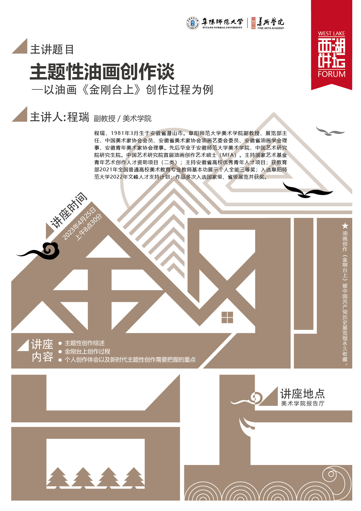 西湖讲坛通告:主题性油画创作谈——以油画《金刚台上》创作过程为例