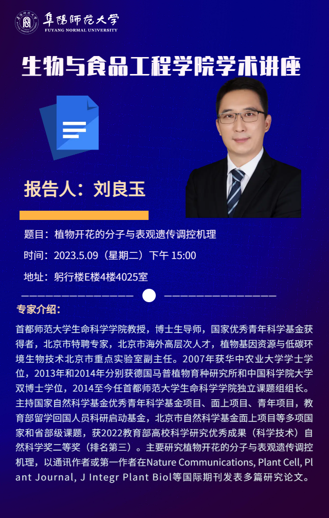 生物与食品工程学院学术报告通告——植物开花的分子与表观遗传调控机理