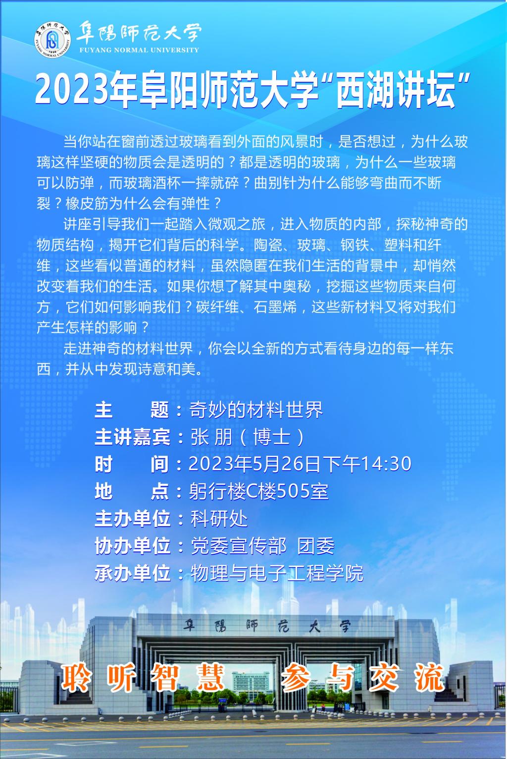西湖讲坛通告——奇妙的材料世界