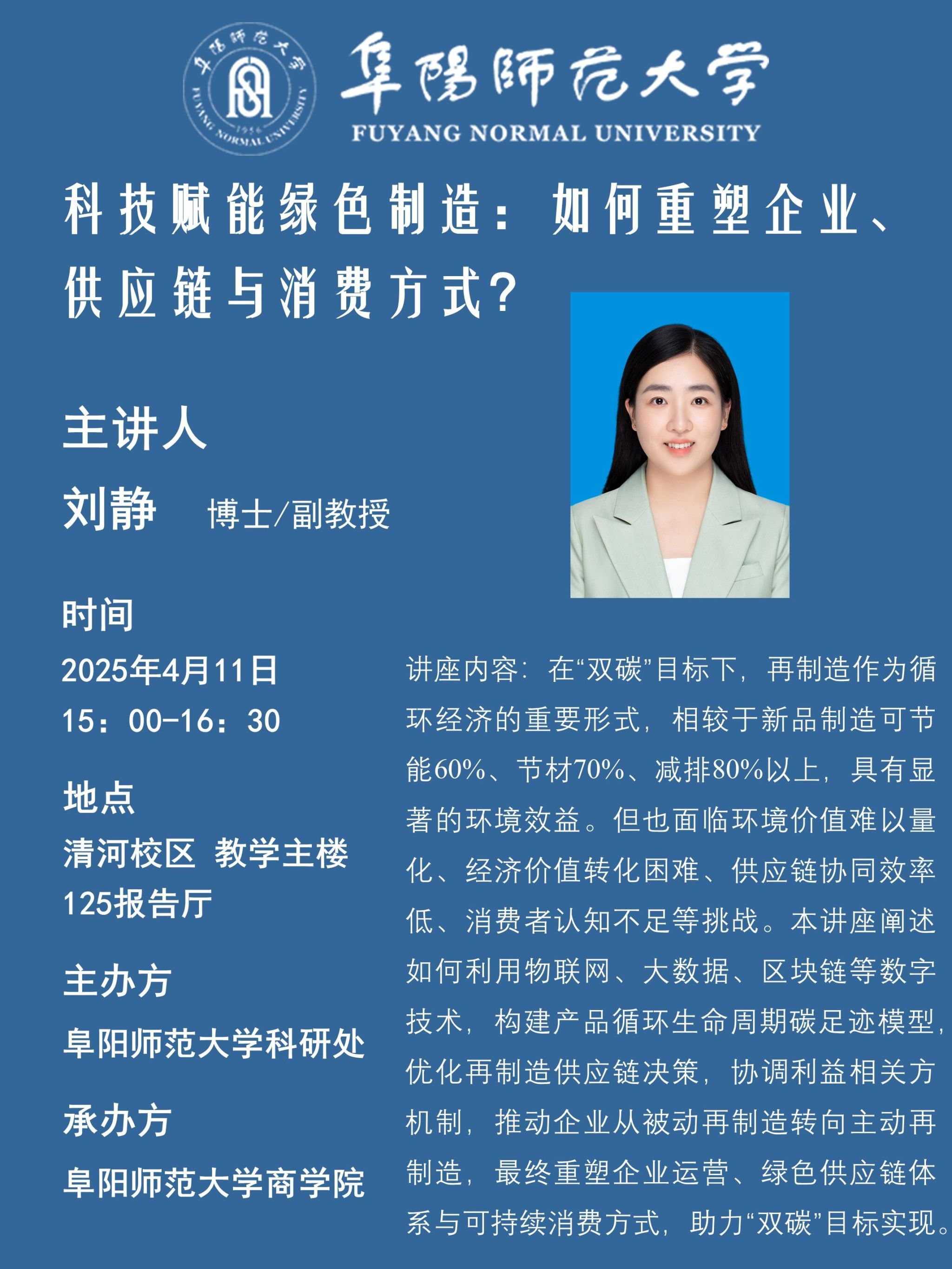 西湖讲坛通告——科技赋能绿色制造:如何重塑企业、供应链与消费方式?