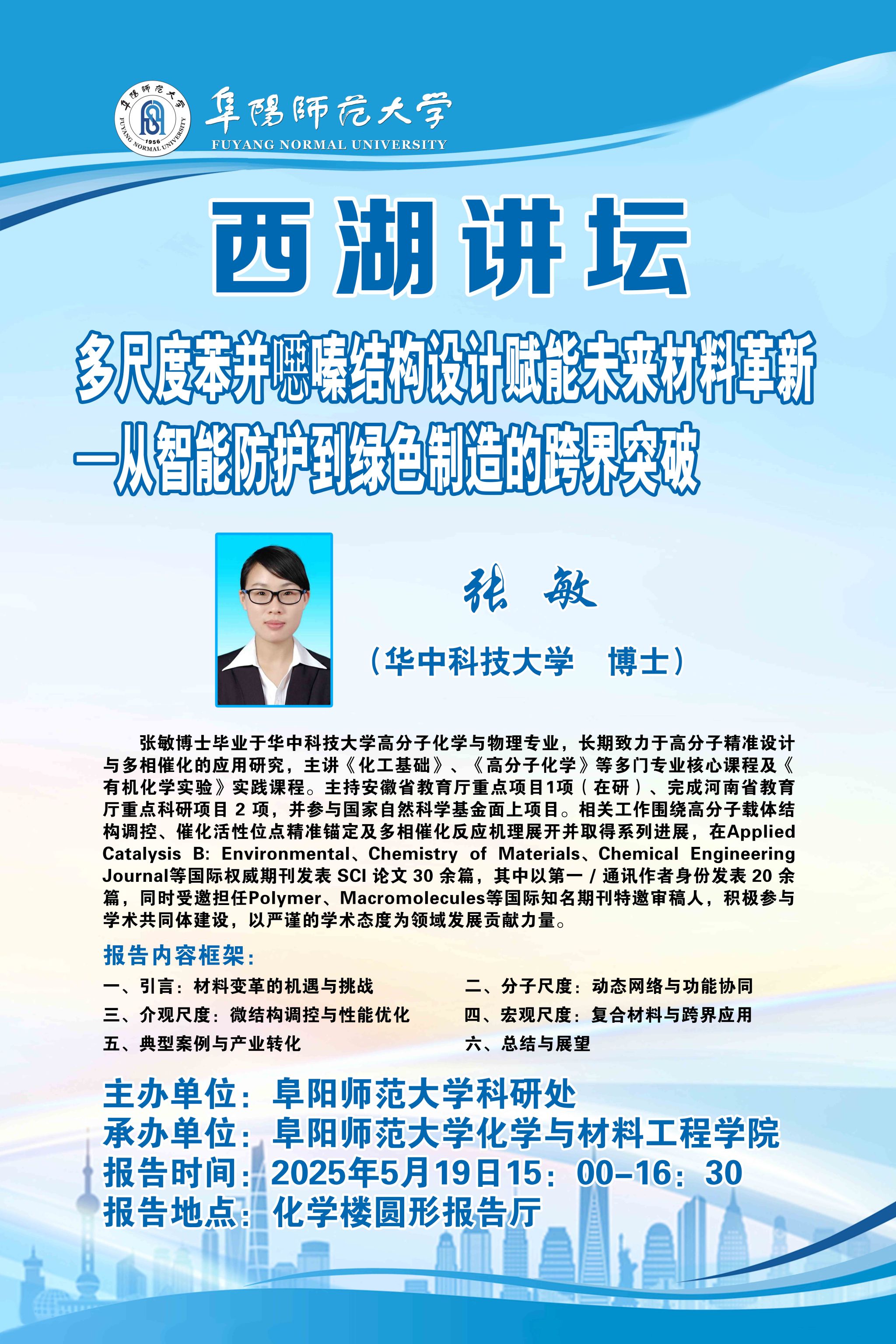 西湖讲坛通告:多尺度苯并噁嗪结构设计赋能未来材料革新——从智能防护到绿色制造的跨界突破