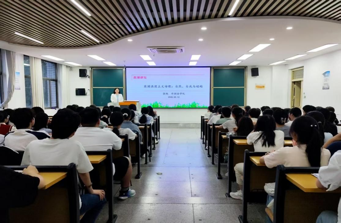 5月12日晚,外国语学院副教授、硕士生导师张艳在西湖校区景行楼401教室主讲题为“英国浪漫主义诗歌:自然、自我与超越”的“西湖讲坛”讲座。本次讲座由科研处主办,外国语学院承办,一百余名师生参加了此次讲座。