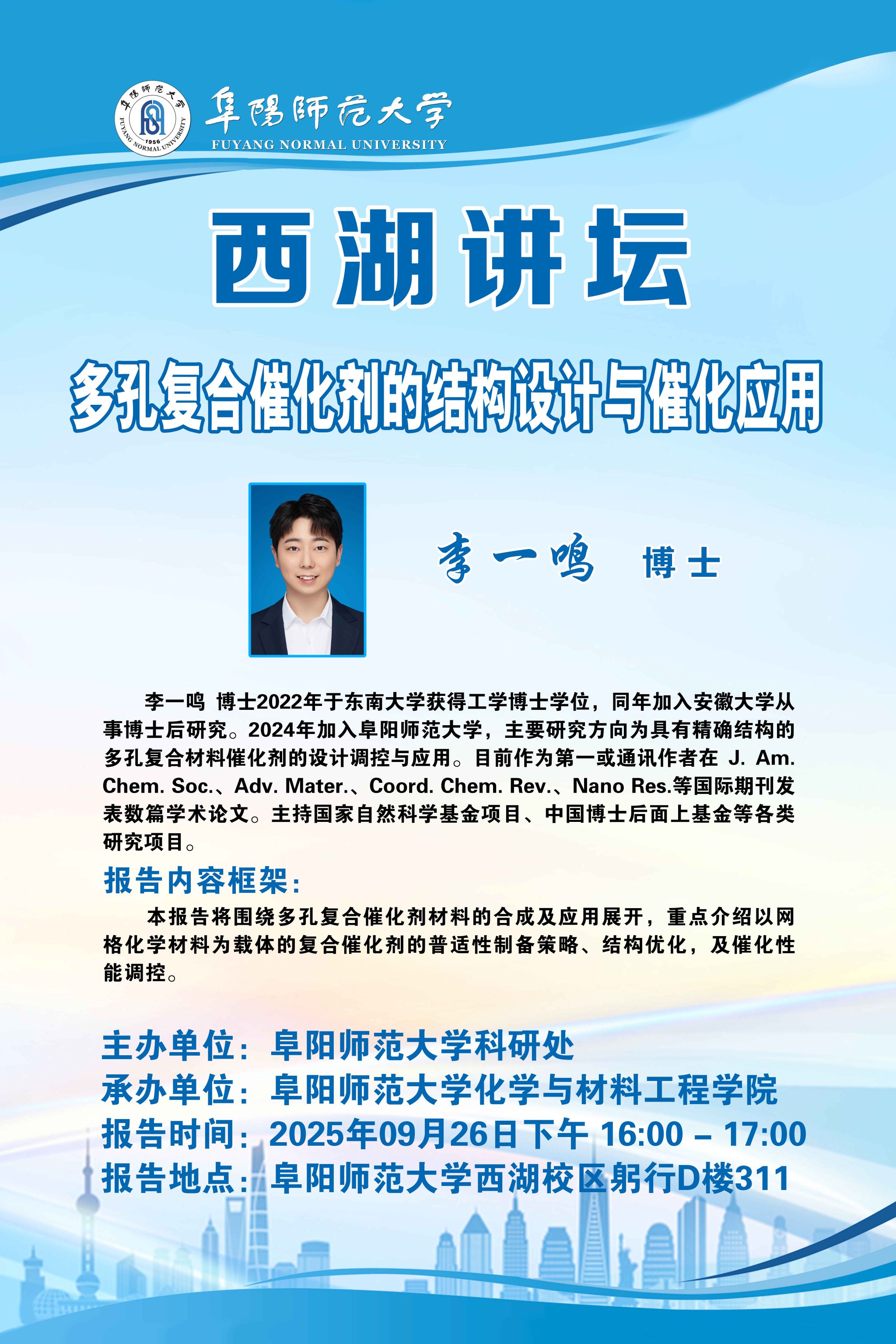 西湖讲坛通告——多孔复合催化剂的结构设计与催化应用