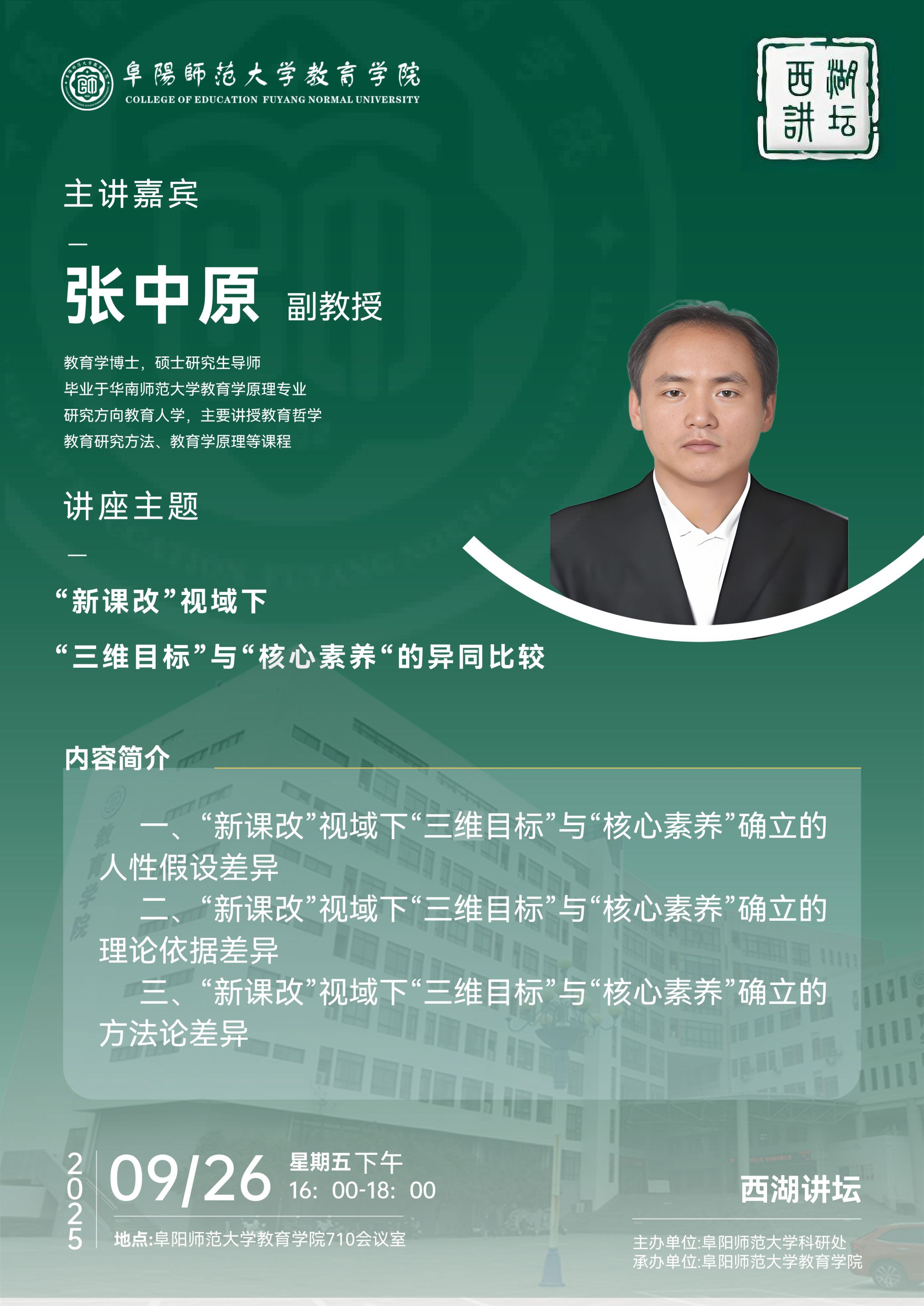 西湖讲坛通告——“新课改”视域下“三维目标”与“核心素养”的异同比较