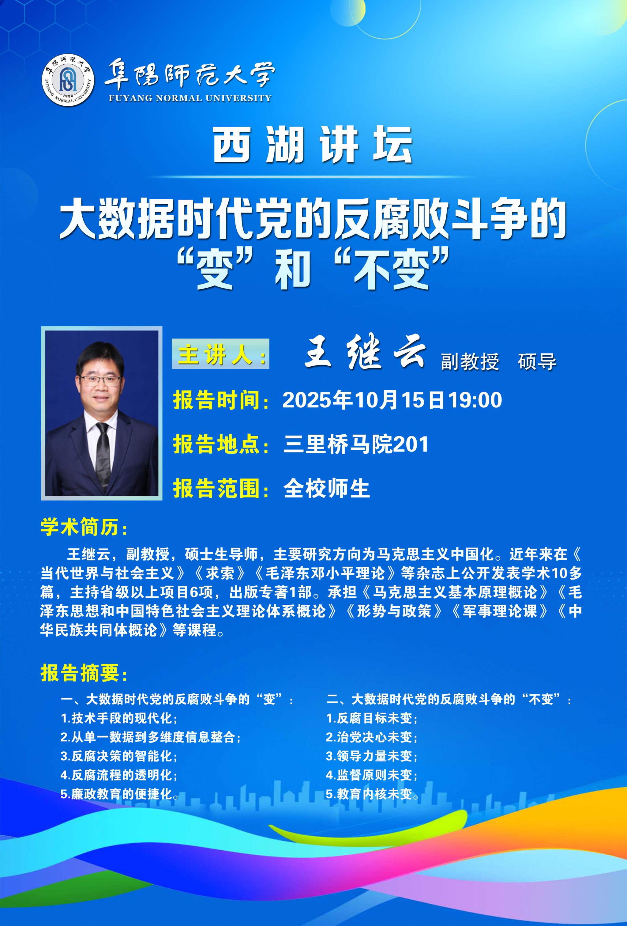 西湖讲坛通告——大数据时代党的反腐败斗争的“变”与“不变”