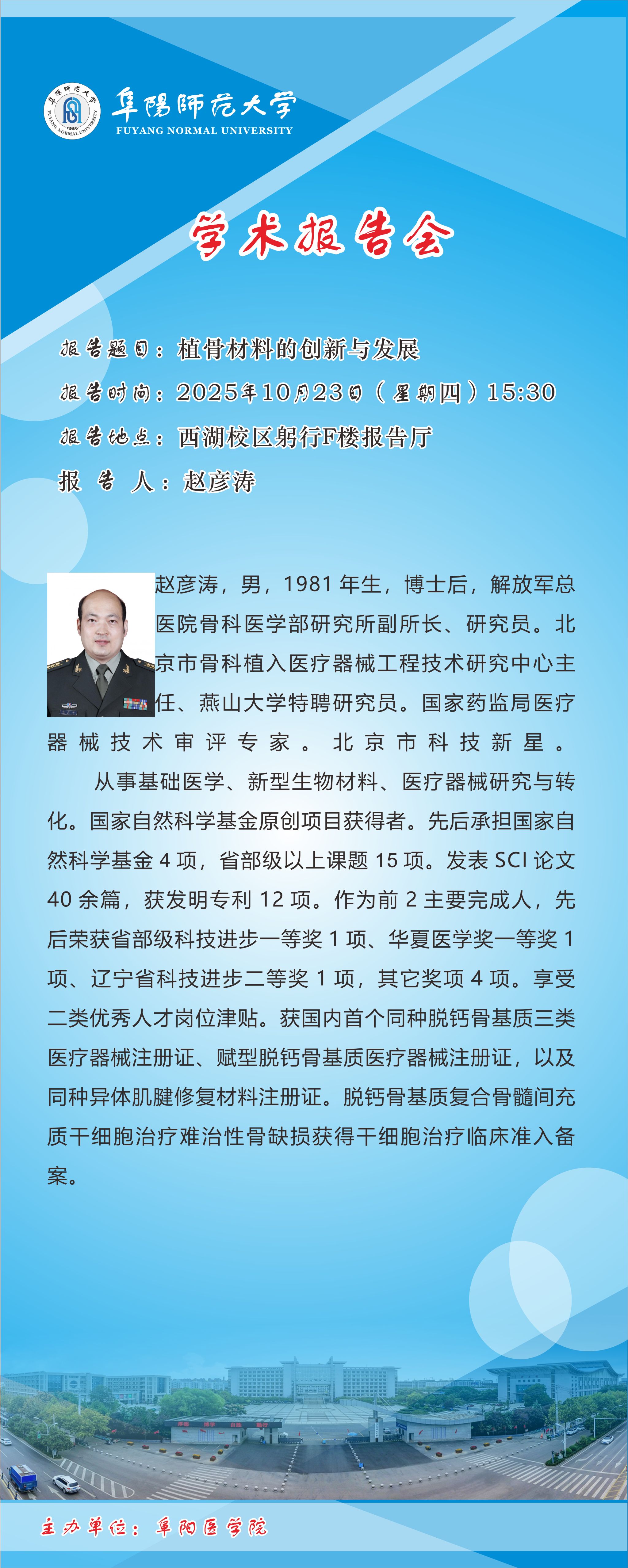 阜阳医学院学术报告通告——植骨材料的创新与发展