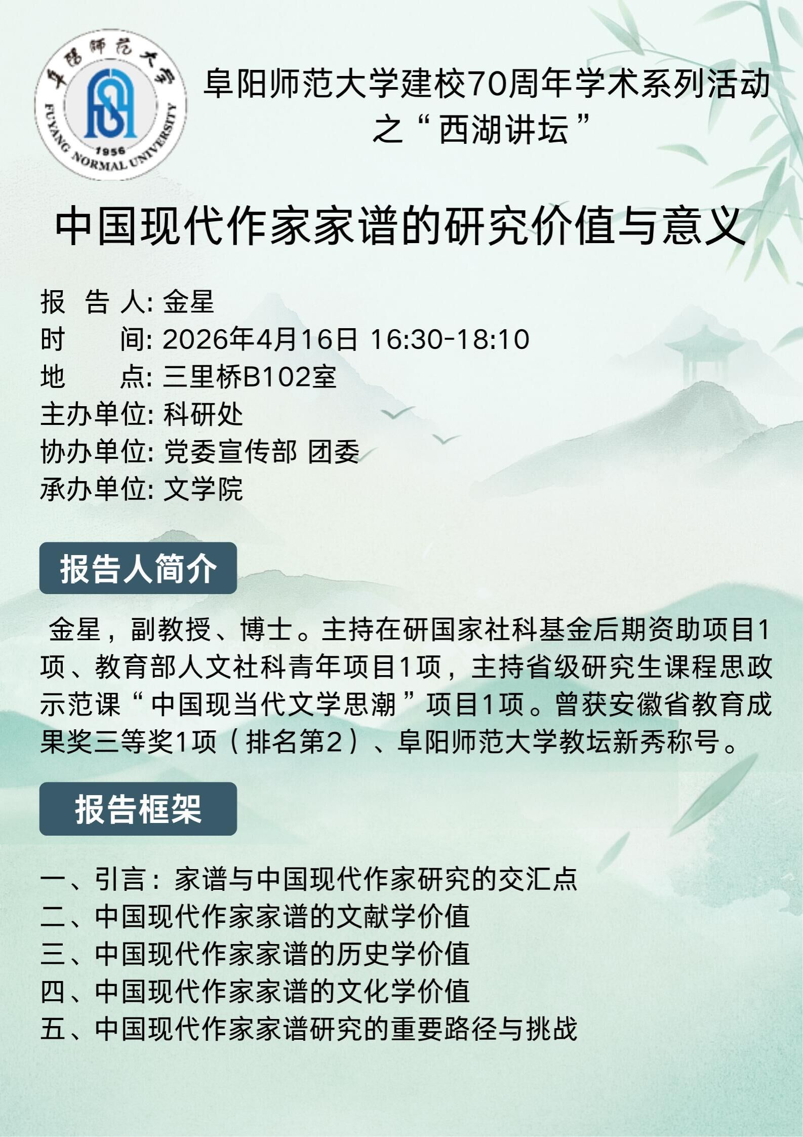 西湖讲坛通告——中国现代作家家谱的研究价值与意义