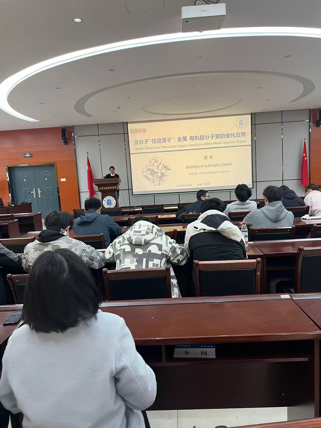 4月8日,由科研处主办,化学与材料工程学院承办的“西湖讲坛”在化学与材料工程学院二楼圆形报告厅顺利举行。本期讲坛由化学与材料工程学院陈杰博士担任主讲,报告主题为“当分子‘住进笼子’:金属-有机超分子笼的催化应用”。活动吸引了全校师生踊跃参与,现场学术氛围浓厚。