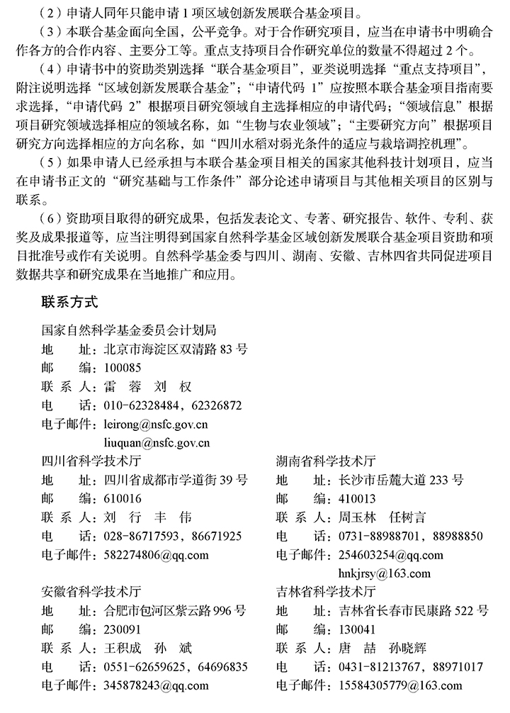 2020年度区域创新发展联合基金(第一批)以重点支持项目的形式予以资助。资助期限为4年,项目的直接费用平均资助强度为260万元,请各单位组织符合条件的老师积极申报。具体申报内容请参照以下网站。