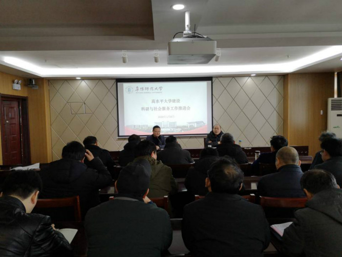 为提升学校科研与服务地方经济社会发展水平,奋力开创高水平大学建设科研与社会服务工作新局面,1月8日上午,校党委常委、副校长李文雍在正行楼1302会议室主持召开高水平大学建设科研与社会服务工作推进会。各学院分管科研(副)院长、省级科研平台负责人、校级科研创新团队负责人、阜阳市政府—阜阳师范大学横向合作项目负责人、国家自然科学基金项目负责人等参加会议。