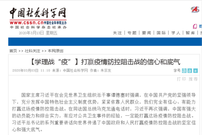 科学总结经验,彰显制度优越。经过全党全国人民的共同努力,目前疫情已得到基本控制,抗“疫”取得阶段性胜利,进一步彰显了中国特色社会主义制度的优越性。马克思主义学院朱宗友教授发表在中国社会科学网上的文章《打赢疫情防控阻击战的信心和底气》,指出新型冠状病毒肺炎疫情防控工作,向全世界传递了中国政府和人民打赢疫情防控阻击战的坚定信心和强大底气,也进一步启示我们,战胜民族复兴进程中的艰难险阻,必须坚持以习近平同志为核心的党中央的坚强领导,发挥中国特色社会主义制度优势,紧紧依靠人民群众,同时还要有强大的综合国力作为保障。来源于共产党员网上的《打赢一场共建共治共享的新型冠状病毒防疫战》一文,由我校信息工程学院武峥博士执笔,指出新型冠状病毒肺炎疫情爆发及防治过程中出现的问题,说明了推进共建共治共享的国家治理体系和治理能力现代化的紧迫性,其中共建突出了制度在治理格局中基础性和战略性地位,共治彰显“全国一盘棋”的制度优势,共享体现了党坚守“为人民谋幸福”的初心。共产党员网还收到我校马克思主义学院彭少辉博士撰写的《运用科技力量打赢疫情防控攻坚战》,提出要深入学习贯彻习近平总书记重要讲话精神,把新冠肺炎防控科研攻关作为一项重大而紧迫任务,坚持向科学要答案、要方法,加大科研攻关力度,为打赢疫情防控人民战争、总体战、阻击战提供强大科技支撑。马克思主义学院闫成俭教授指导研究生撰写的论文《以中国之“制” 打赢抗“疫”之战》,指出在新型冠状病毒肺炎疫情的防控中,以习近平同志为核心的党中央始终将人民群众生命安全放在首位,以中国之“制”积极应对疫情挑战,坚持党的集中统一领导,坚持以人民为中心的发展思想,坚持全国一盘棋,坚决打赢抗“疫”之战。