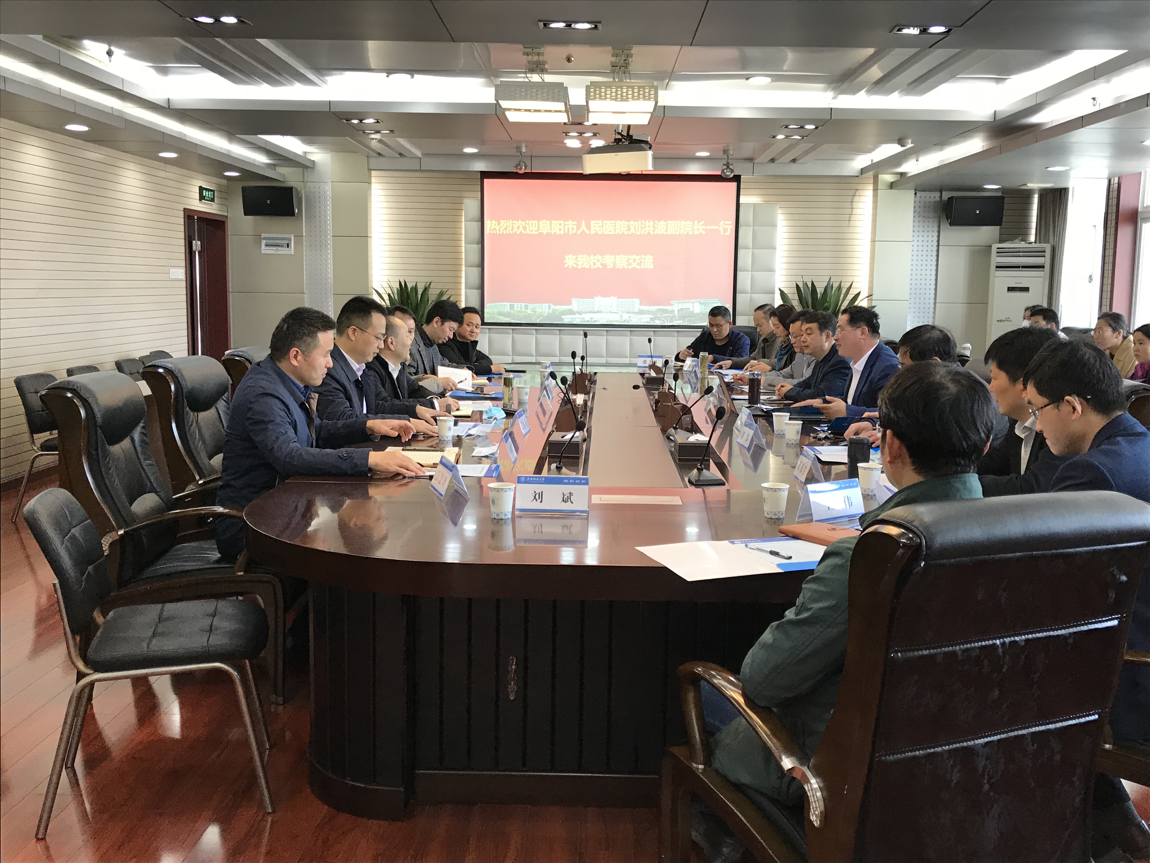 李文雍首先对刘洪波一行的到来表示欢迎,并从科研、教学、师资、研究生培养等角度介绍我校的具体情况。他表示,此次“深化医校协同,推动科研合作“座谈会的召开意义重大,学校将以大学成功更名为契机,进一步深化与地方合作,推动双一流建设,加快实现内涵式发展。刘洪波介绍了阜阳市人民医院的基本情况,他指出,阜阳市人民医院的医护人员具有丰富的临床经验,希望进一步提高整体科研水平以及申报高水平科研项目和发表高质量科研论文能力,因此迫切需要加强与阜阳师范大学的合作,提升理论水平和科技创新能力。