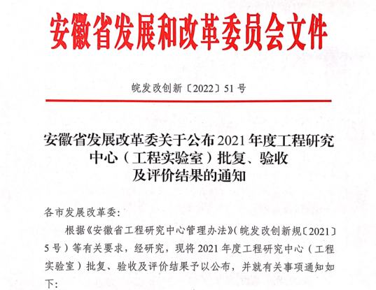 近日,安徽省发展和改革委员会发布了《安徽省发展改革委关于公布2021年度工程研究中心(工程实验室)批复、验收及评价结果的通知》,我校申报的“安徽省功能性果饮生态发酵工程研究中心”获得批准建设。