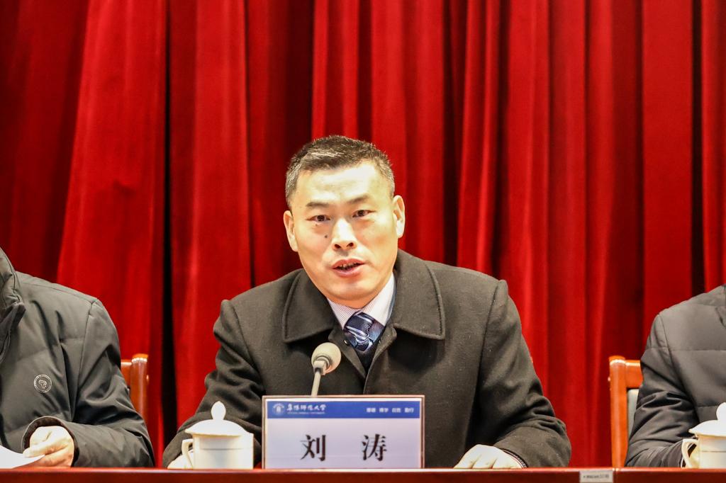 刘涛向大会的召开表示祝贺,向与会代表和学校广大社科工作者致以诚挚问候,对我校广大哲学社会科学工作者服务中心、服务大局、服务地方的理论自觉和使命担当给予了高度评价。他指出,党的二十大对繁荣发展哲学社会科学作出战略部署,阜阳师范大学社科联要认真学习贯彻习近平总书记重要讲话精神和党的二十大战略部署,全面推进阜阳师范大学哲学社会科学工作,要胸怀“国之大者”,坚持守正创新,勇担职责使命,当好桥梁纽带,努力把学校社科联建设成为有存在感、有聚合力、有话语权的“社科之家”,不断推进学校哲学社会科学工作迈上新台阶,为繁荣发展我省哲学社会科学事业作出新的更大贡献。