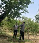 本次调研的目的主要为鉴别湿地公园中的樱桃果树品种,以挑选优良的樱桃品种。在湿地管理人员王国枢研究员的带领下,屈长青一行对园内40棵之前标记樱桃树的果实形态和颜色进行了统计与观察,并用游标卡尺测量了果实纵、横径和果柄长度等指标。随后采集了青油椿、黑油椿和红油椿嫩芽和不同年份的香椿树皮,以便进行实验室检测与功能分析。此行不仅提高了研究生们的行动和观察能力,而且增长了见识。