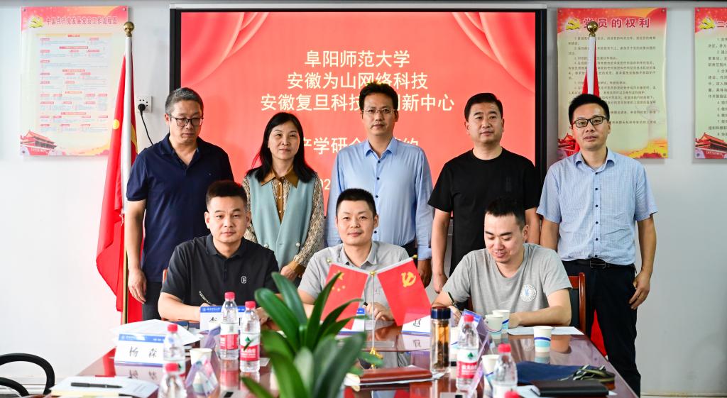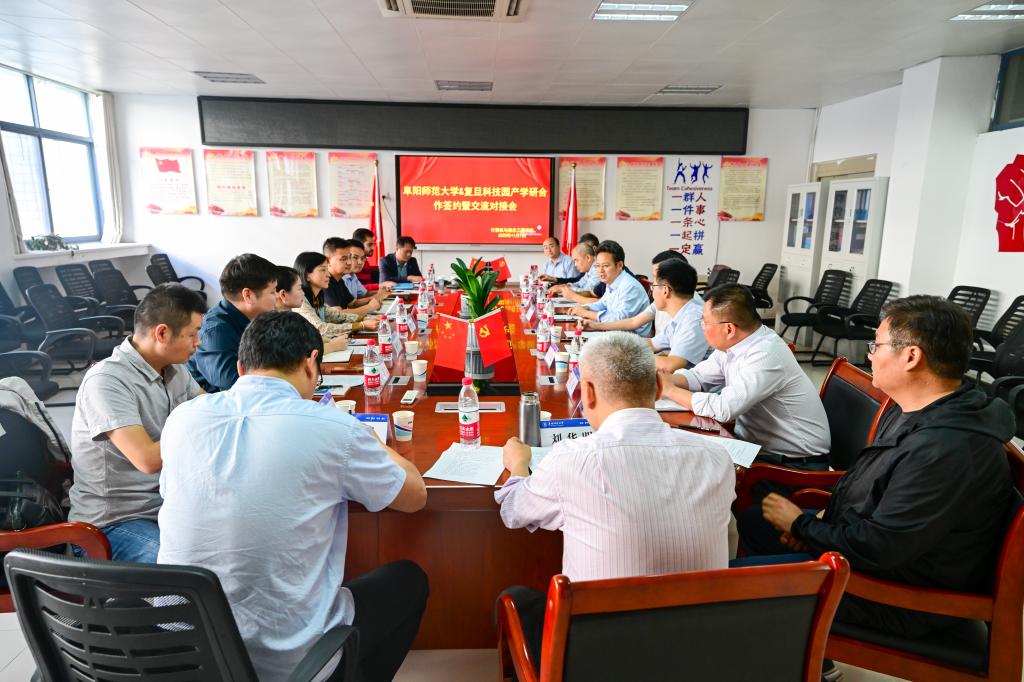 为深化阜阳师范大学与阜合工业园区、复旦科技园的共建合作,推动阜阳师范大学科研成果转化应用,促进阜合园区内的产业综合发展和企业合作,打造具有“师大特色”的阜阳师范大学研发—复旦科技园企业转化—阜合工业园区重点企业生产的“科技成果转化模式”,11月1日下午我校联合阜合产业园区经贸发展局(科创中心)和安徽复旦科技园创新中心在阜阳师范大学西湖校区组织召开了产学研合作签约暨交流对接会。园区经贸局副局长(科创中心主任)周艳红,复旦科技园书记李文邦,科研处成果转化中心副主任于立志,物理与电子工程学院院长朱勇、计算机与信息工程学院副院长王先超以及多名企业负责人和我校博士教授参加交流会,会议由科研处处长张丙开主持。