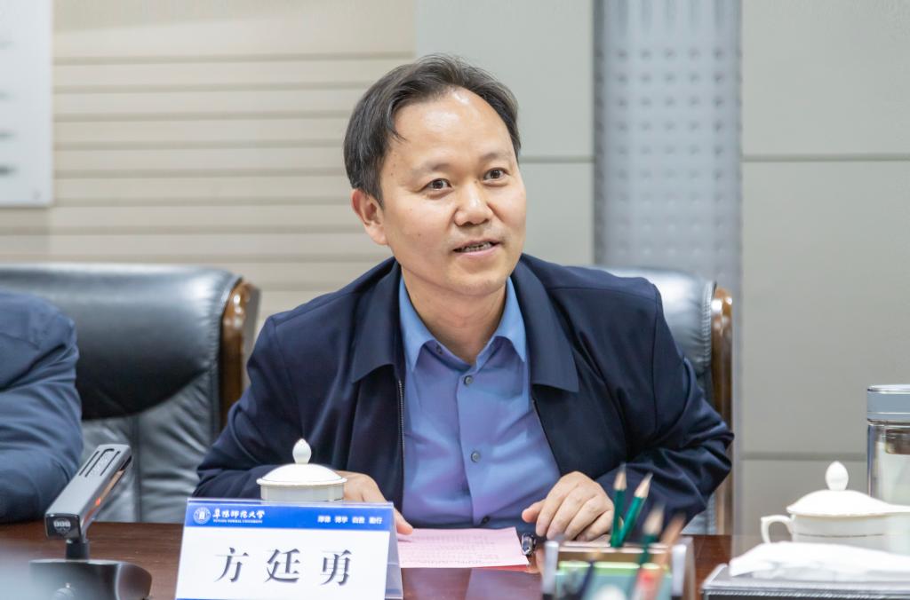 4月12日下午,河北省社科院党组成员、省委讲师团副主任兼副院长、省社科联委员袁宝东来校调研社科普及工作。校党委副书记、校长方廷勇,校党委常委、副校长张庆旭接待了袁宝东一行,阜阳市委宣传部常务副部长、一级调研员燕少红陪同调研。