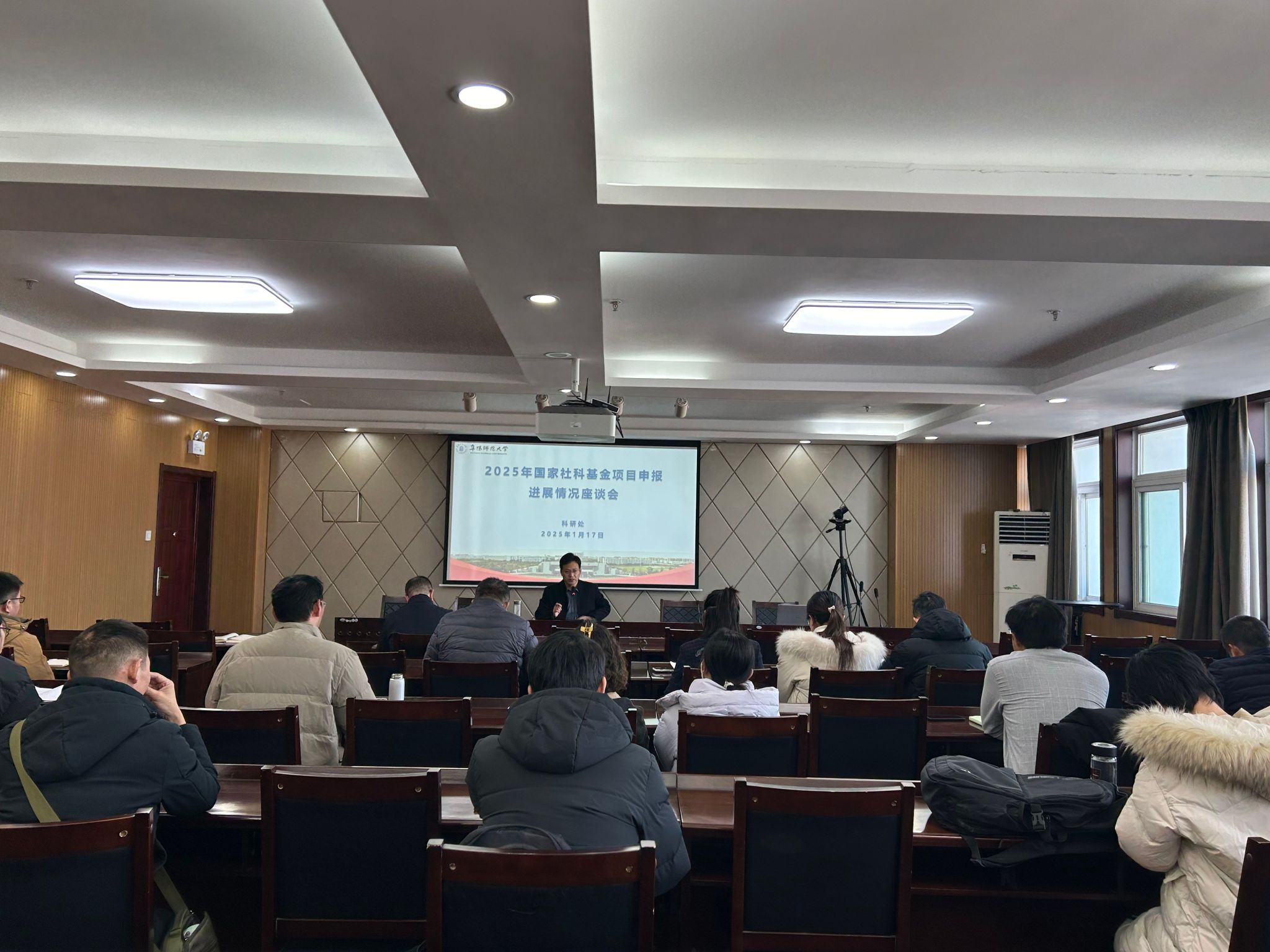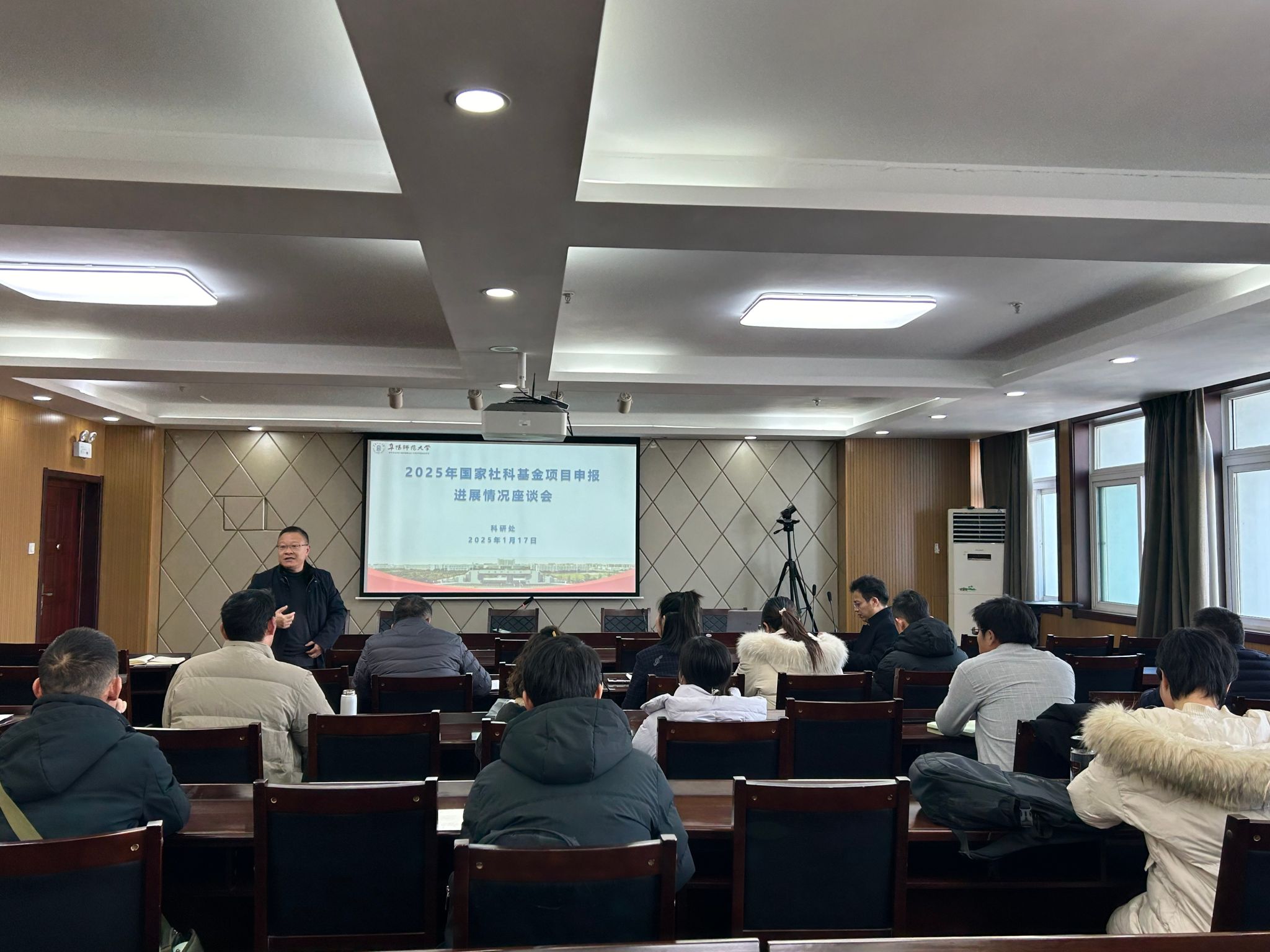1月17日下午3:00,科研处在正行楼1302会议室组织召开我校2025年国家社科基金申报进展情况座谈会,科研处处长张丙开、副处长魏遥及2025年科研英才岗教师参会。