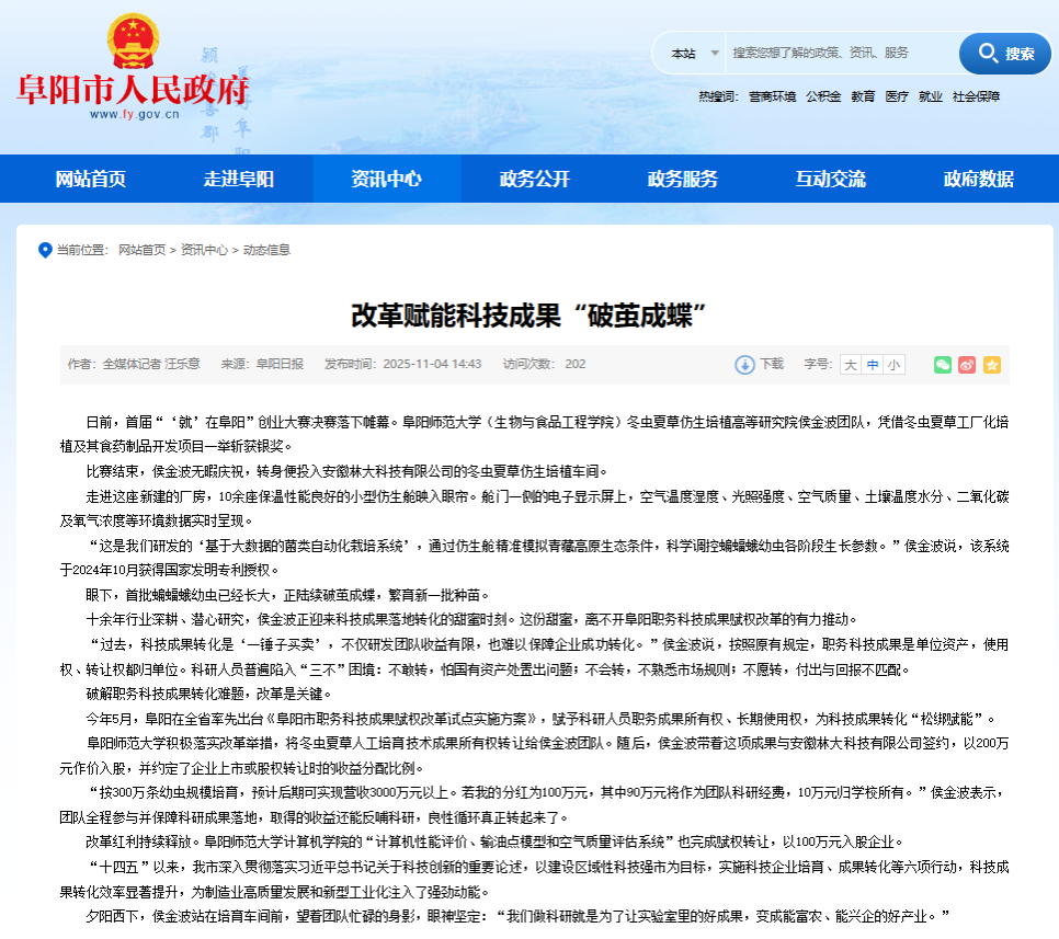 阜阳日报:《改革赋能科技成果“破茧成蝶”》