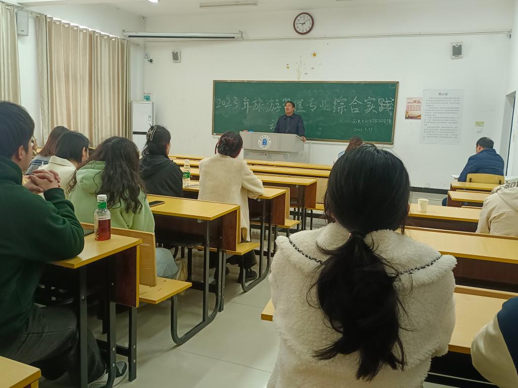 2023年3月27日早上9点,在汉风A楼110教室召开了2023年旅游管理专业——皖南实践考察活动动员会,学院院长陈雷教授、副院长郭从杰教授、带队指导老师卢舒程、穆成林,及2020级、2021级旅游管理全体学生参加了此次动员会。