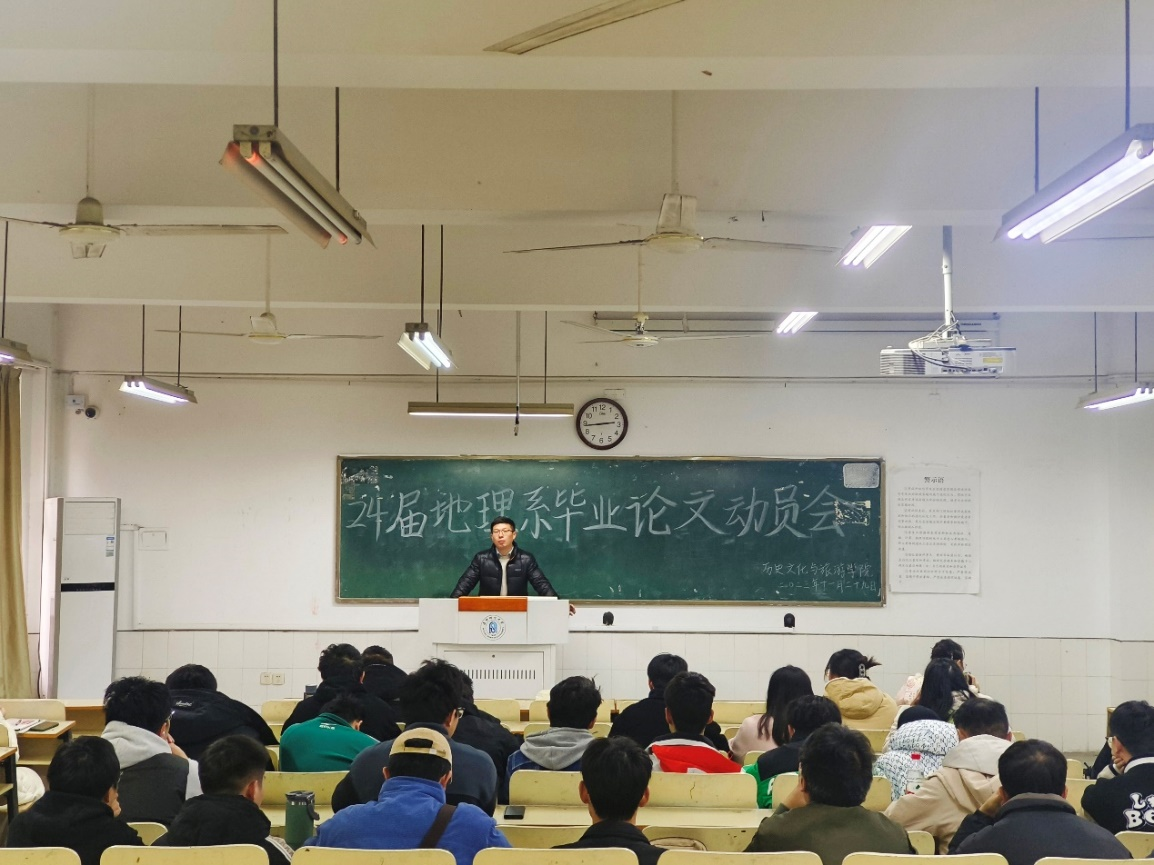 为做好地理系2024届本科生毕业论文工作,提高毕业论文质量,规范毕业论文工作管理。11月29日下午,地理系于景行楼201教室召开2024届本科毕业论文动员大会。会议由袁甲主持,白如山、黄鹏娜、赵阳、韩平等老师以及2020级地理系全体学生参会。
