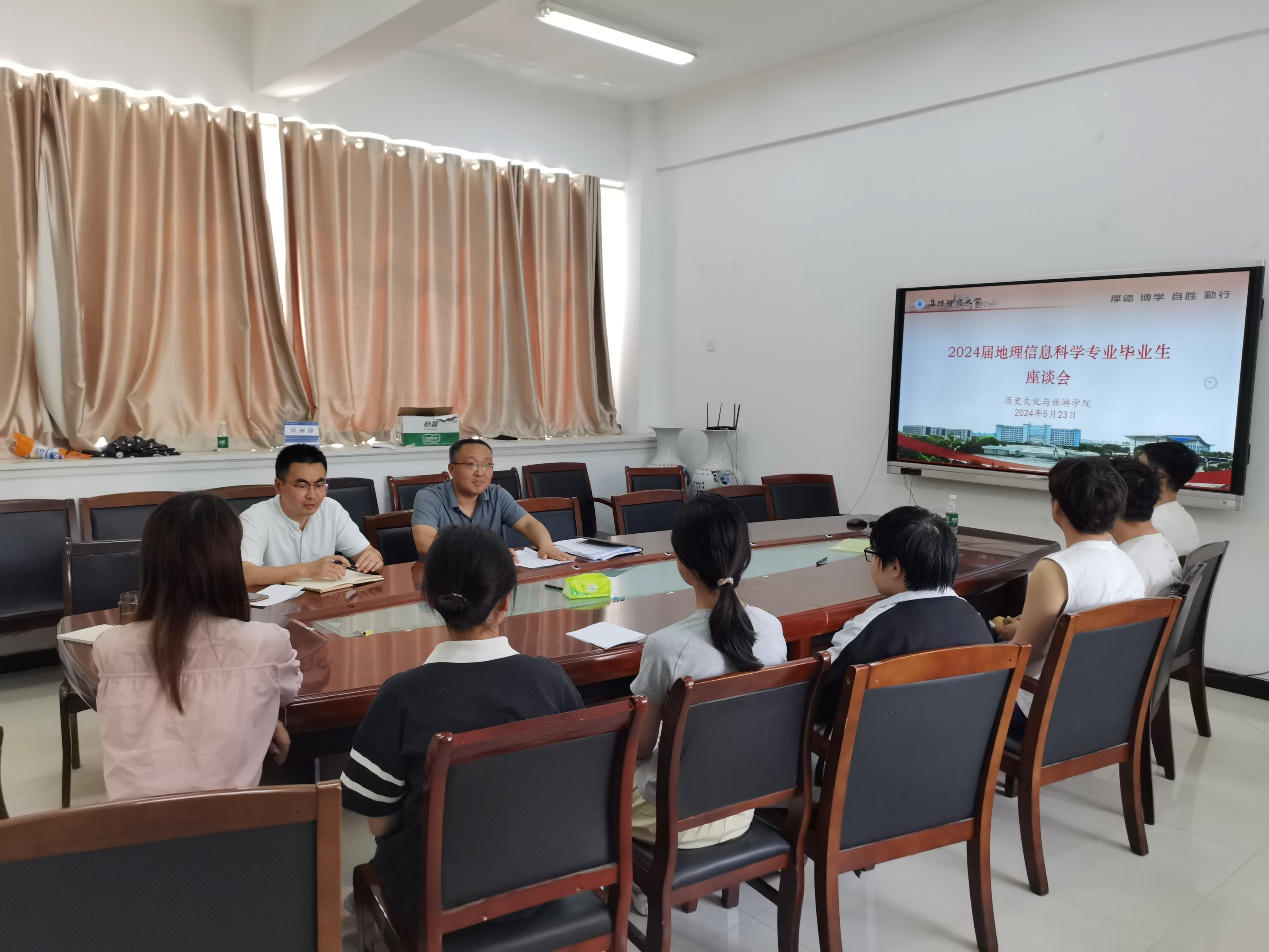5月23日下午,学院2024届地理信息科学专业毕业生座谈会在汉风B楼333会议室召开。座谈会由学院党委书记吴磊主持,地理信息科学专业教师赵阳、李治显、李丰凯、余秋实以及毕业生代表参加。