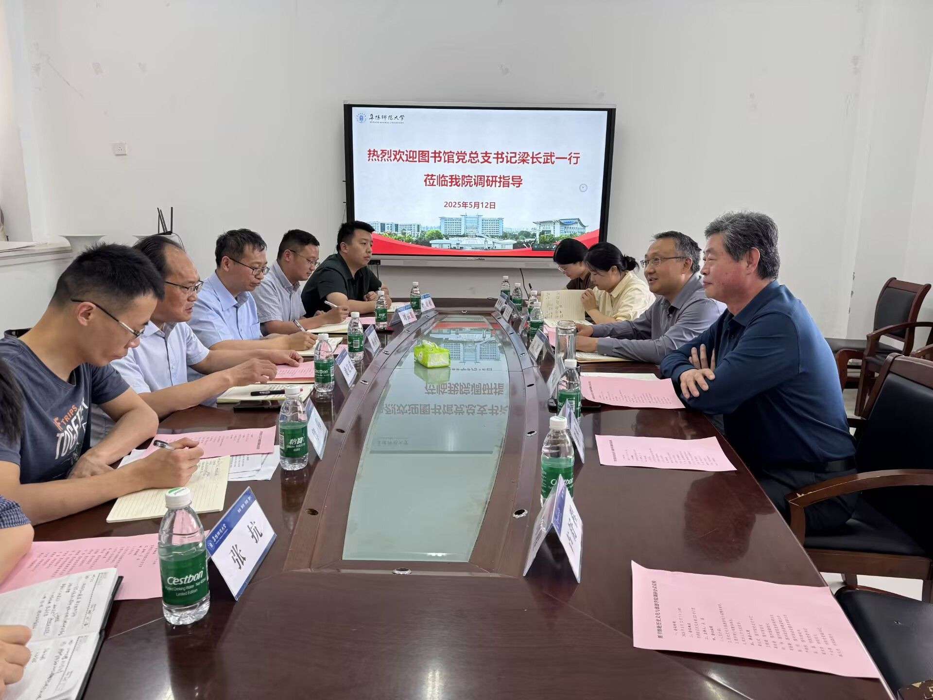 5月12日下午,图书馆党总支书记梁长武一行6人来学院开展调研交流。学院党政领导及教务秘书、辅导员参与调研座谈。