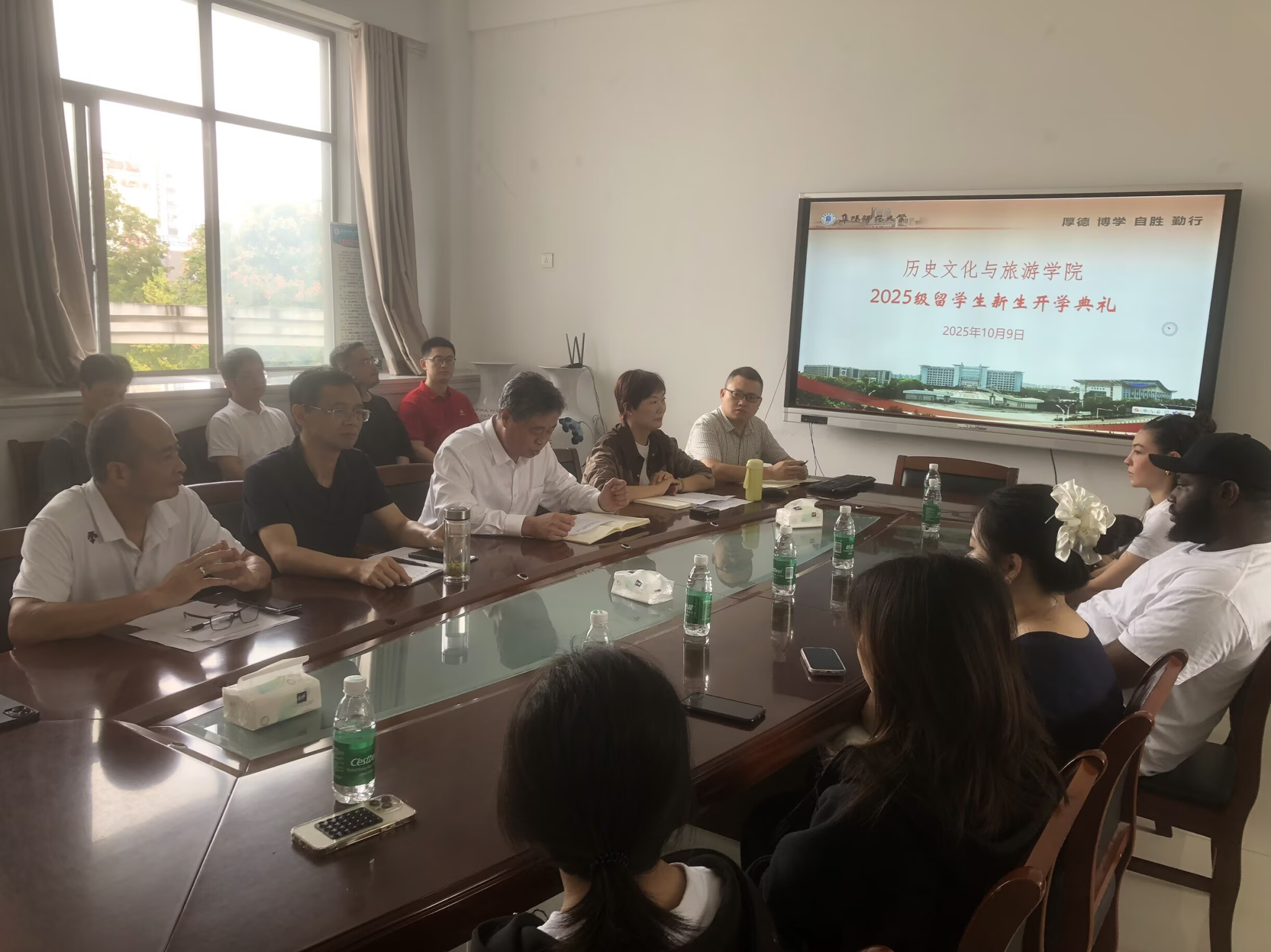 10月9日上午,学院2025级国际新生开学典礼在汉风B楼333办公室举行。学院党委书记吴尝、院长梁家贵、历史学与旅游管理专任教师及来自土耳其、越南、尼日利亚等国的2025级全体国际学生参加本次典礼。典礼由学院党委副书记卞会泉主持。
