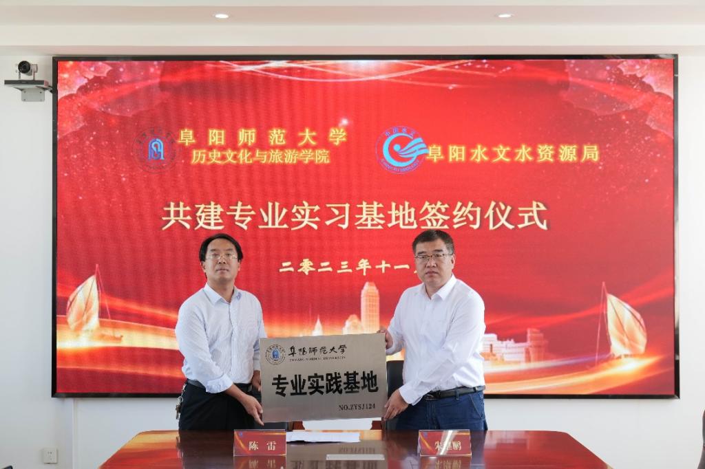 11月2日上午,院长陈雷、地理系主任胡文峰及地理系教师与学生代表一行8人,赴阜南县王家坝水文站举行地理专业实习基地签约与挂牌仪式。阜阳水文水资源局局长朱继鹏、副局长冯清华、王飞及王家坝水文站工作人员等参加了活动。