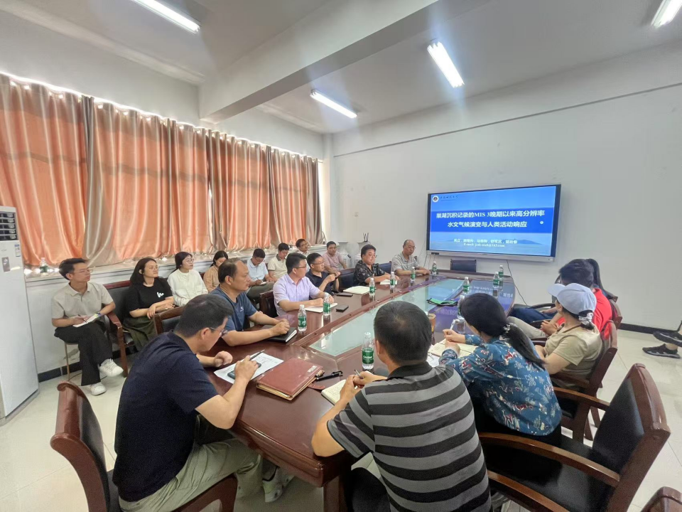 6月11日下午,应学院邀请,安徽师范大学博士生导师吴立教授在汉风楼B楼333会议室做题为《巢湖沉积记录的MIS3晚期以来高分辨率水文气候演变与人类活动响应》的专题讲座,并与学院地理系教师座谈。讲座由副院长郭从杰教授主持,学院地理系全体教师参加。