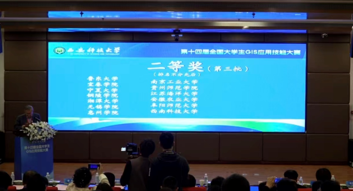 11月14日至16日,第十四届全国大学生GIS应用技能大赛在西安科技大学圆满落幕。我院2023级地理信息科学一班杜星月、洪光伟、汪心成、王涵韵同学组成的团队,在决赛中凭借扎实的专业理论基础和出色的团队协作能力,荣获全国二等奖。