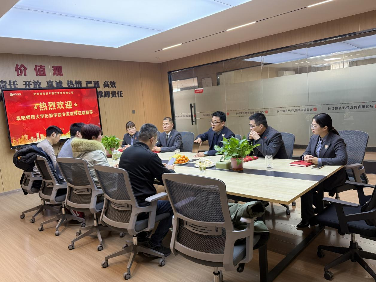 为深化产教融合,推动校企合作,1月2日下午,学院旅游系系主任张松婷与教师樊冬平、卢舒程、邹蒙一行赴安徽银海颍禾餐饮管理公司进行考察交流。该交流会由安徽银海颍禾餐饮集团执行董事兼总经理李国强主持。