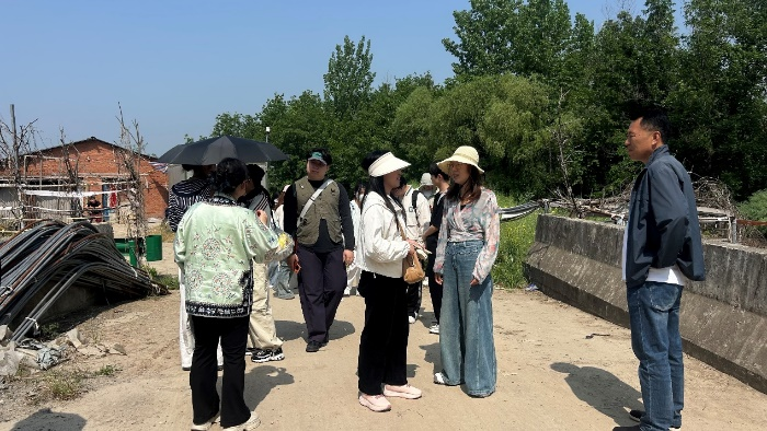 随后,在村委工作人员带领下,师生团队深入村域一线,开展实地踏勘、入户访谈与地形测绘三项核心工作。师生分组穿行于村落街巷、田间地头、山林水系,详细记录村庄现状空间格局、建筑风貌、道路系统、公共设施分布;与村干部、村民代表、种植户深入交流,倾听群众对村庄建设、产业发展、人居环境改善的意见建议,并运用无人机等专业测绘设备,对村域地形地貌、高程、边界等关键地理信息开展航空测绘与精准采集,高效获取乡村规划编制所需的一手空间基础数据。