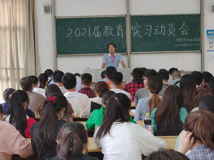 为提高教育实习的积极性、主动性,增强学生的教育教学实践能力,学院于2020年9月27日下午4点30分在汉风A楼111教室召开了2021届教育实习动员会。学院党委副书记吴磊、副院长陈雷、实习指导老师、班级辅导员和2021届历史学专业、地理科学专业全体同学参加本次动员会。