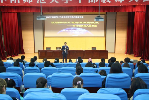 为组织好第七届中国国际“互联网+”大学生创新创业大赛校园赛,提高学生参赛作品质量和水平。2021年4月20日,教务处在正行楼二楼报告厅举办第七届中国世界“互联网+”大学生创新创业大赛校园赛专题培训会,邀请国家首批线上一流课程负责人、湖南师范大学孟奕爽副教授作题为“以创新创业应对未来的挑战——时代精英之人生算法”专题报告。各学院大赛负责人、指导老师以及参赛学生参加了培训。报告会由教务处副处长房厚信主持。