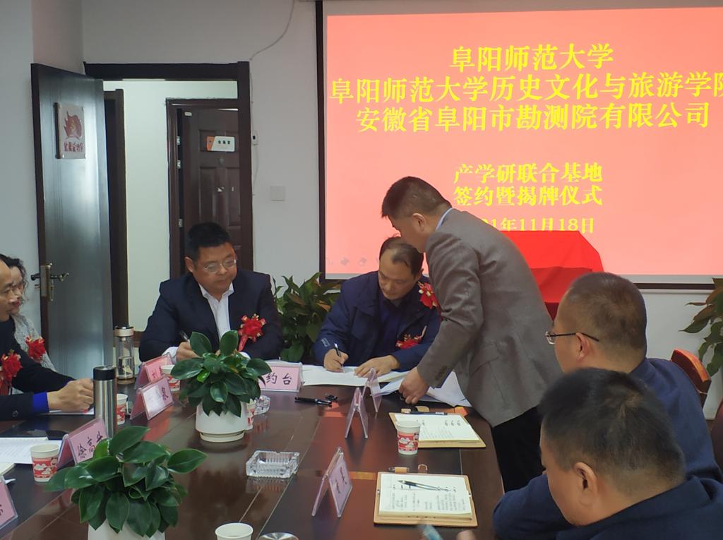 11月18日上午,学院党委副书记卞会泉、副院长郭从杰、城乡规划教研室主任江进德一行3人赴阜阳市勘测院有限公司举行专业实践基地、教学科研基地签约与挂牌仪式,阜阳市勘测院有限公司董事长兼总经理杨建伟,副总经理田世贤,副总经理赵永华,高级工程师黄昊等成员参加。仪式由副总经理田世贤主持。