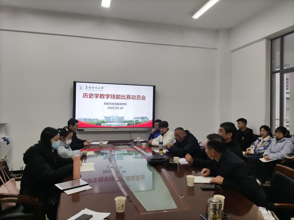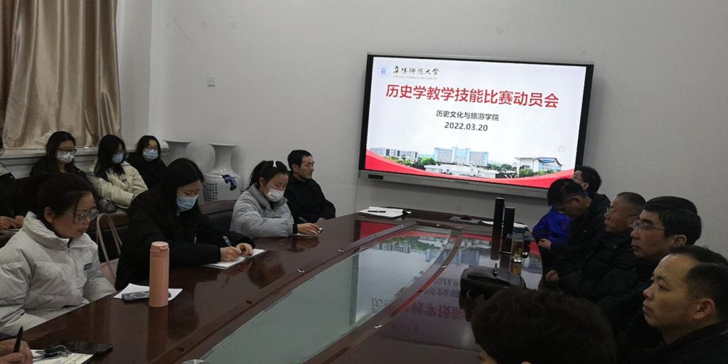 为提升我院师范生的教学技能,促进师范生专业素质提升,同时也为备战第二届安徽省高等师范院校历史学专业教学技能竞赛。3月20日下午,学院在汉风B楼333会议室举行了历史学教学技能比赛动员大会,陈雷院长、历史系主任刘家富、龚光明、洪共福等教师以及备赛的研究生、本科生参会,学院邀请校外专家阜阳三中叶德季主任、阜阳五中周群主任作为主讲嘉宾。会议由副院长郭从杰主持。
