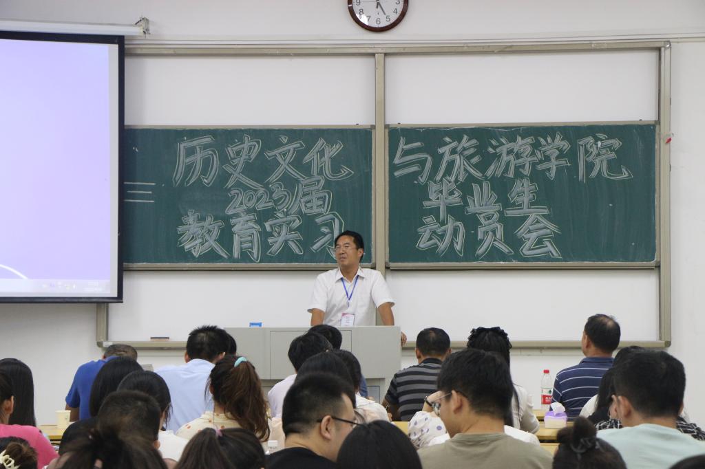 为进一步做好师范生的教育实习工作,2022年9月8日下午,学院2023届毕业生教育实习动员会在西湖校区汉风A楼109教室举行。学院院长陈雷、副院长郭从杰、各位实习指导教师和2023届历史、地理专业毕业生参加此次实习动员会。