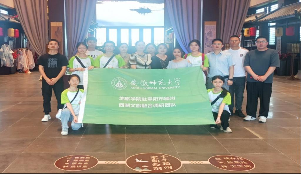 为积极推进市校合作项目“基于宋韵文化演进机制的文旅科技产品开发研究——以阜阳颍州西湖为例”实施工作,扎实开展大学生社会责任教育,7月4日上午,学院联合安徽师范大学地理与旅游学院在颍州西湖举行市校合作项目专题调研暨“大学生社会责任教育实践基地”授牌活动。学院党委书记吴磊,安徽师范大学阮陵博士,颍州西湖负责人王瑞、万芸,项目组成员及安徽师范大学地理与旅游学院、历史文化与旅游学院学生调研团队参加活动,活动由历史文化与旅游学院旅游系主任、项目校内负责人张松婷主持。