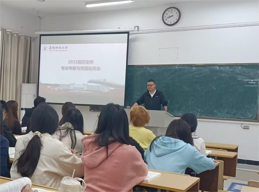 为推动历史学专业课堂教学与专业实践相结合,加强师范生的综合素养与能力,学院于2023年10月7日上午在汉风A楼112教室召开了2021级历史学专业考察与劳动实践动员会,2021级历史学专业2个班级的全体同学参加。动员会由中国史教研室主任胡乐伟老师主持。