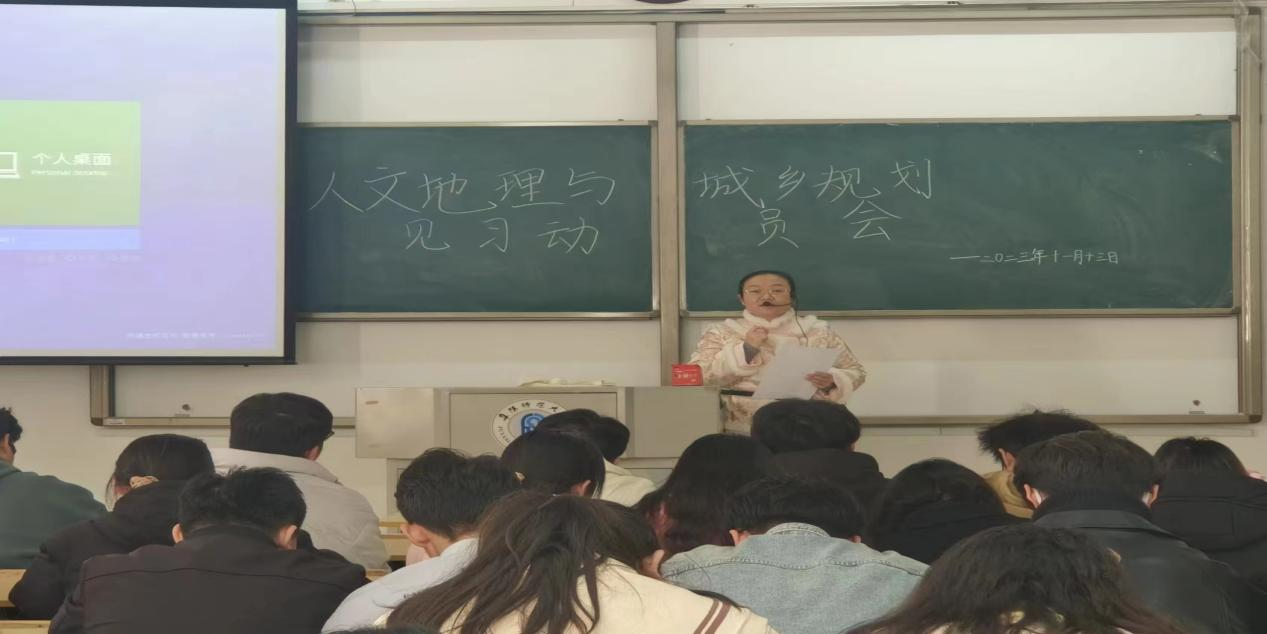 为了激发同学们对人文地理、城乡规划知识的兴趣和热情,帮助同学们更好的投入到专业学习和实践中去,助力同学们专业学习能力的提升。11月13日下午,学院在汉风A楼105召开了人文地理与城乡规划专业见习动员会,黄鹏娜老师主持会议,2021级、2022级人文地理与城乡规划1班全体同学参加。